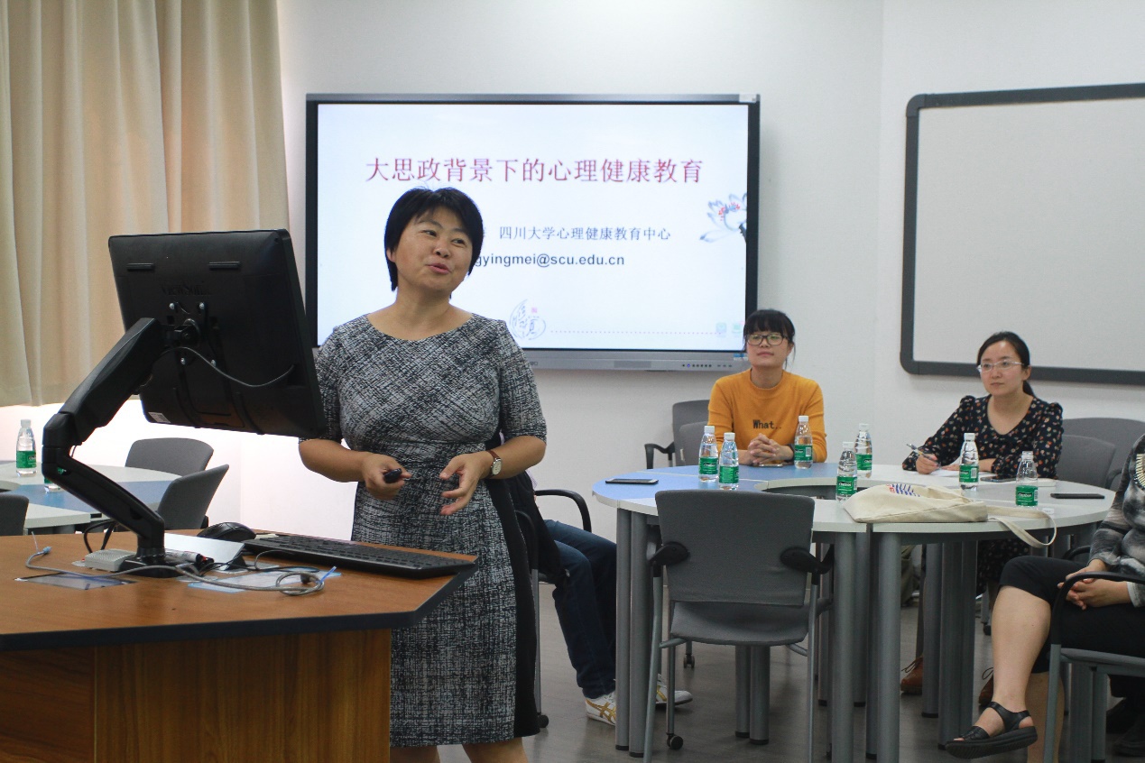 四川大学心理健康教育中心副主任王英梅教授作了《大思政背景下的心理健康教育》主题培训。她结合心理学专业知识、调查数据、典型案例等生动而形象地对大学生心理健康工作领域、心理健康状态、心理健康标准、精神状况等进行了深入分析,对如何发现大学生情绪与行为障碍以及作为班主任如何应对和专业化处理作了详细阐释。