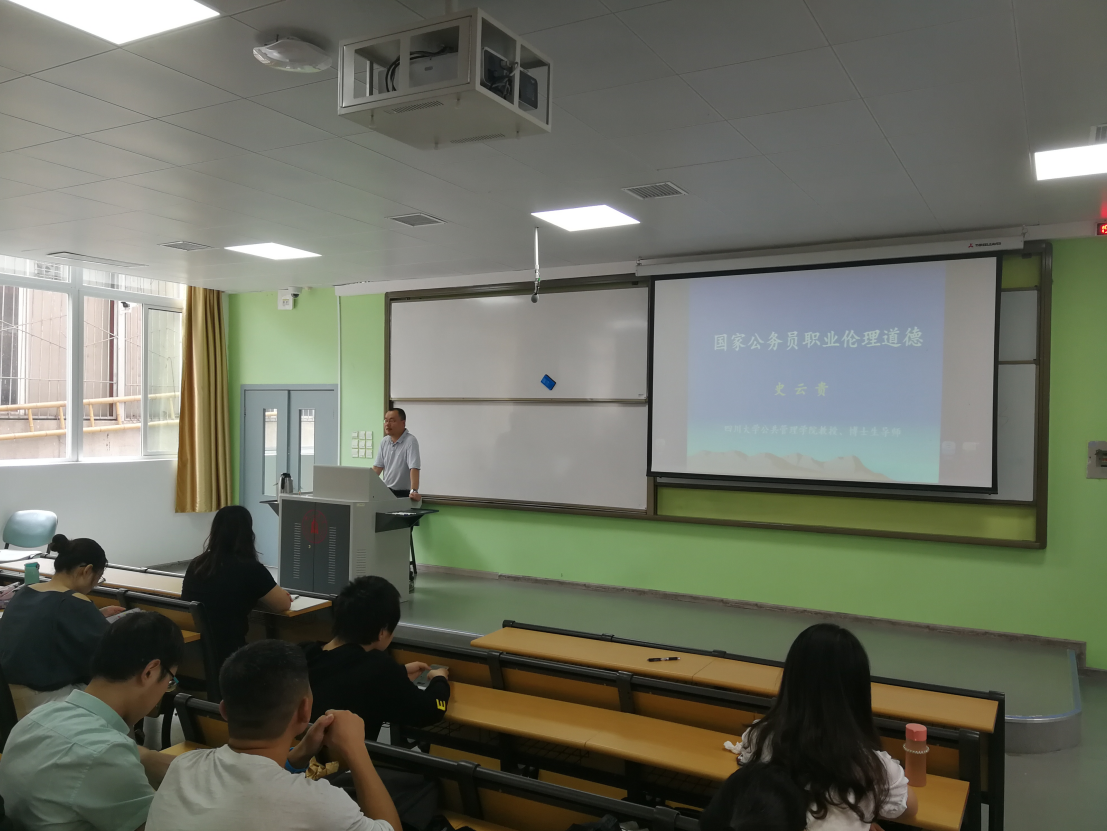 2019年6月21日下午,best365中国官方网站2016级本科思政公开课在东三教150教室成功举办,best365中国官方网站院长史云贵教授受邀担任主讲嘉宾,为同学们讲授了题为“国家公务员职业伦理道德”的思政公开课,2016级辅导员吴银雪老师主持了本次公开课。
