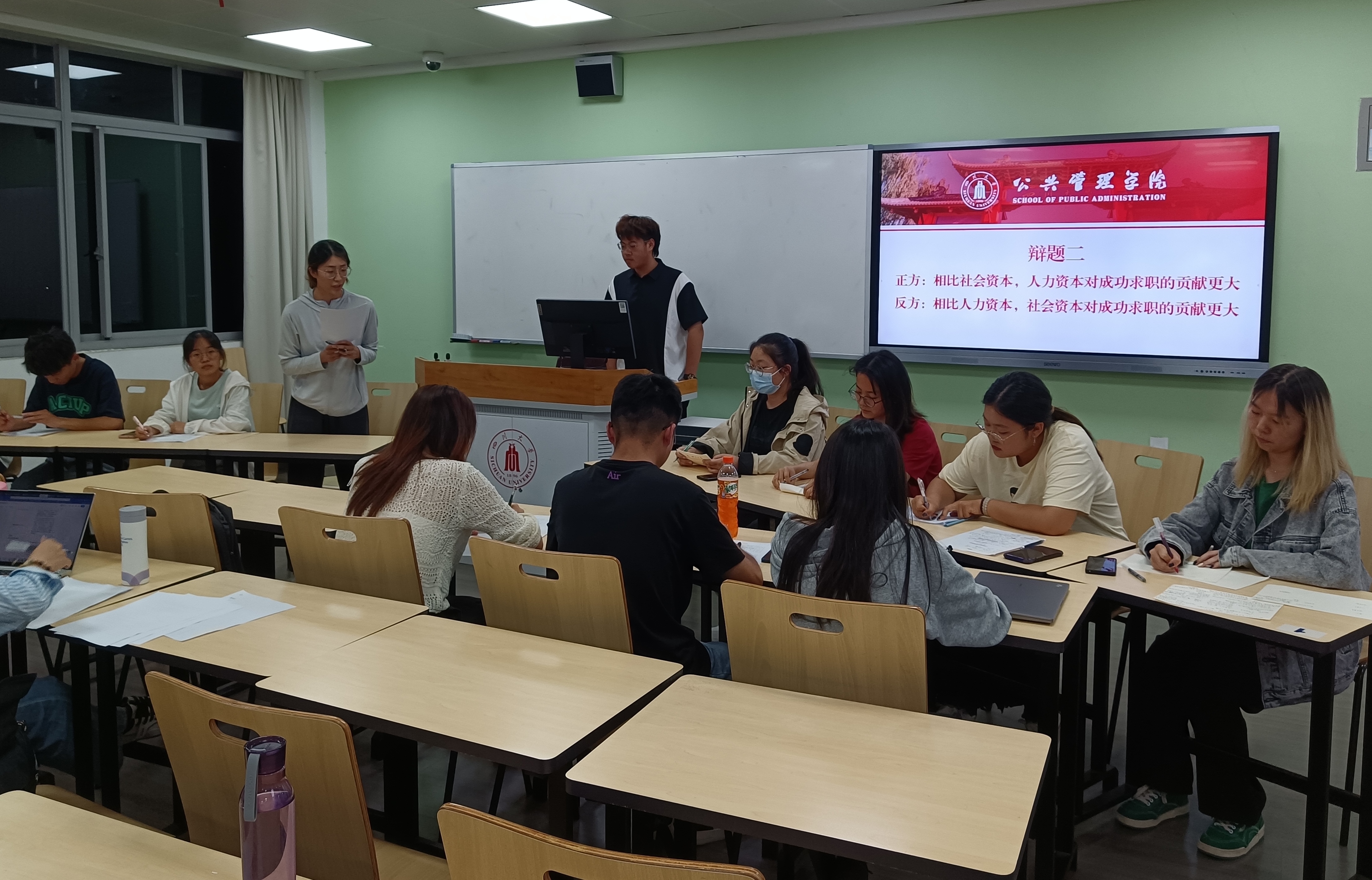 5月24日晚,在任课教师杨帆的精心组织下,《劳动经济学》课程辩论赛在江安校区第一教学楼C106教室成功举行。本次辩论赛共设三个辩题,每个辩题均关涉社会热点或劳动经济学的重要议题,分别是人工智能是否会导致大量失业、人力资本与社会资本对成功求职的贡献,以及劳动是否存在高低贵贱之分。三位来自best365中国官方网站的硕士研究生简丽敏、杨丹、刘伟同学担任评委。