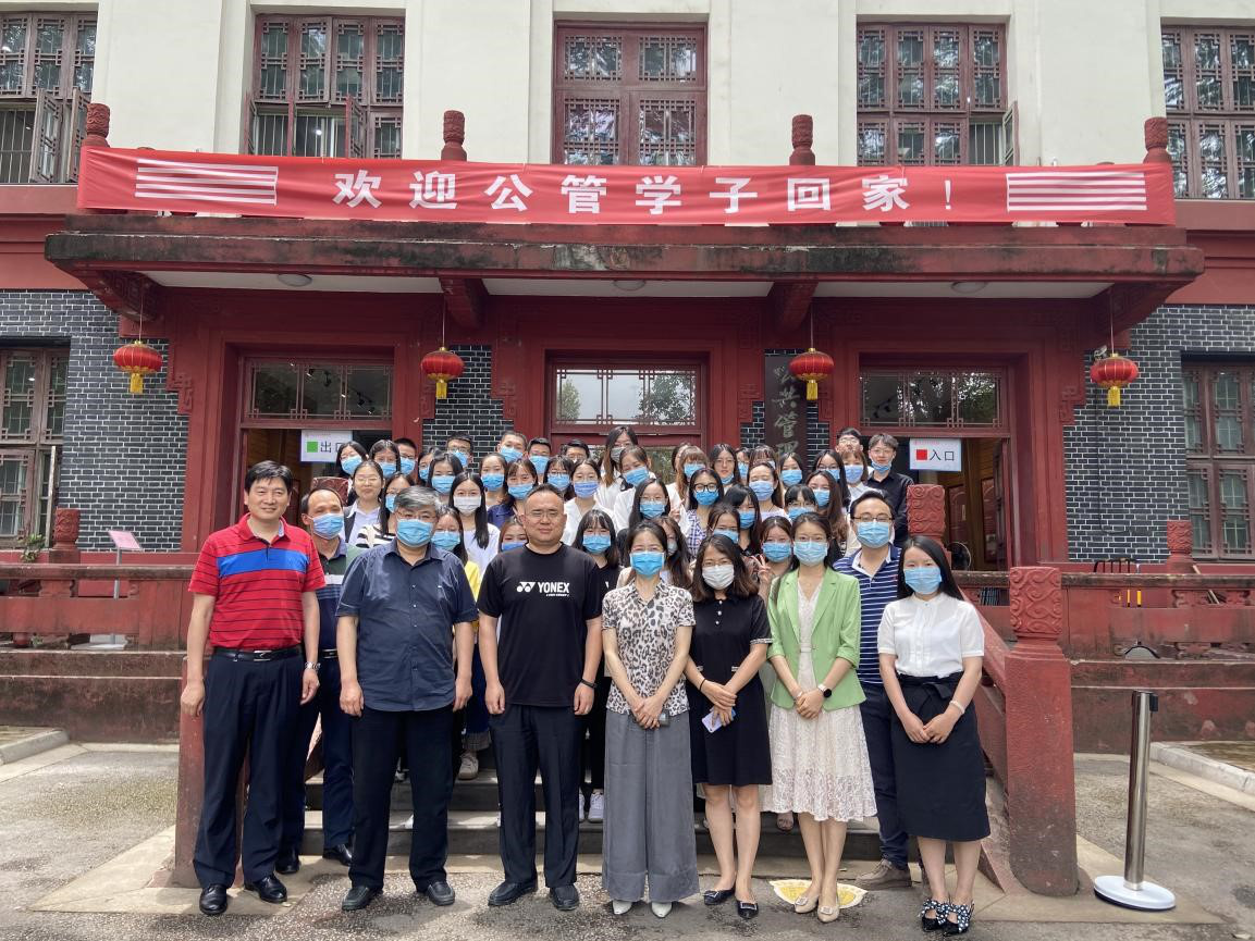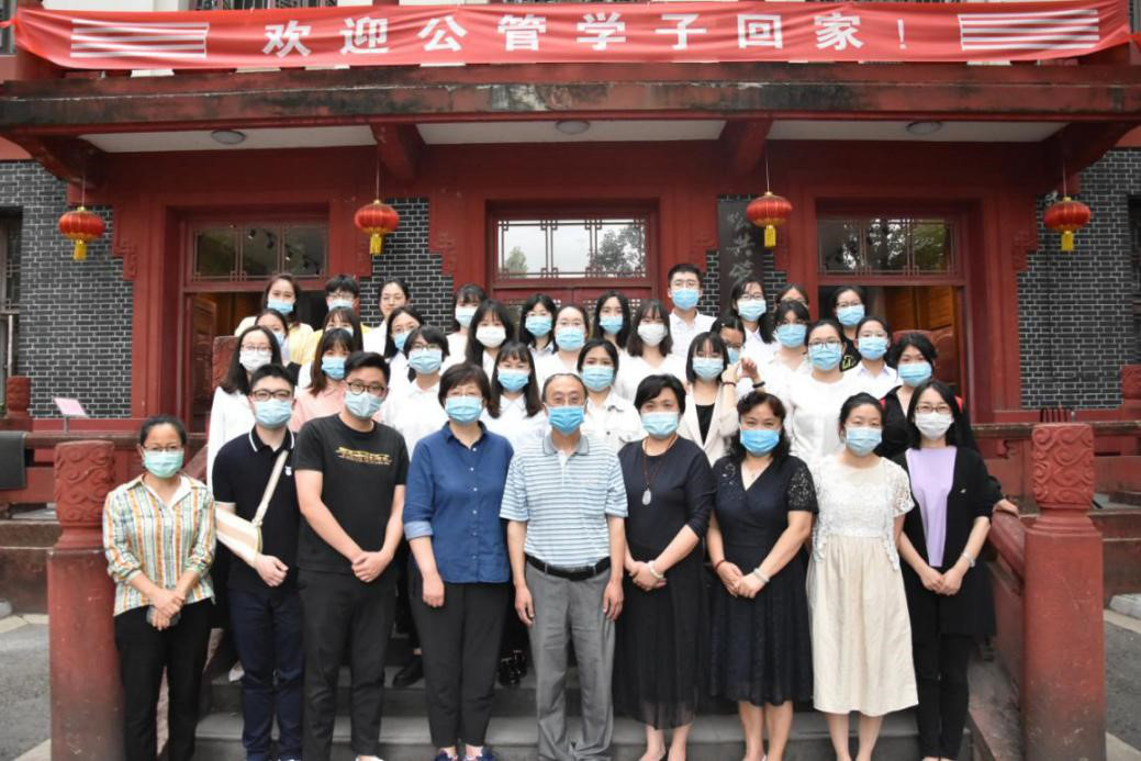 会后,参加此次答辩会的全体师生于公共管理楼前合影留念。